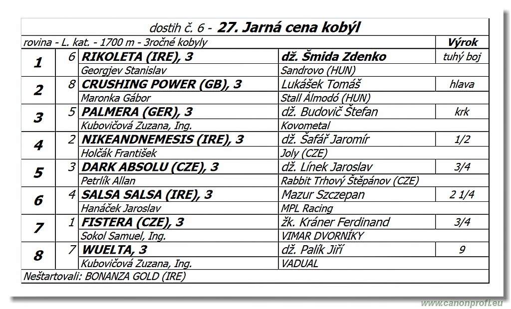 dostih è. 6 - 27. Jarná cena kobýl