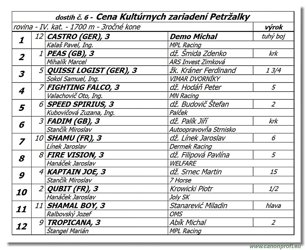 dostih è. 6 - Cena Kultúrnych zariadení Petržalky